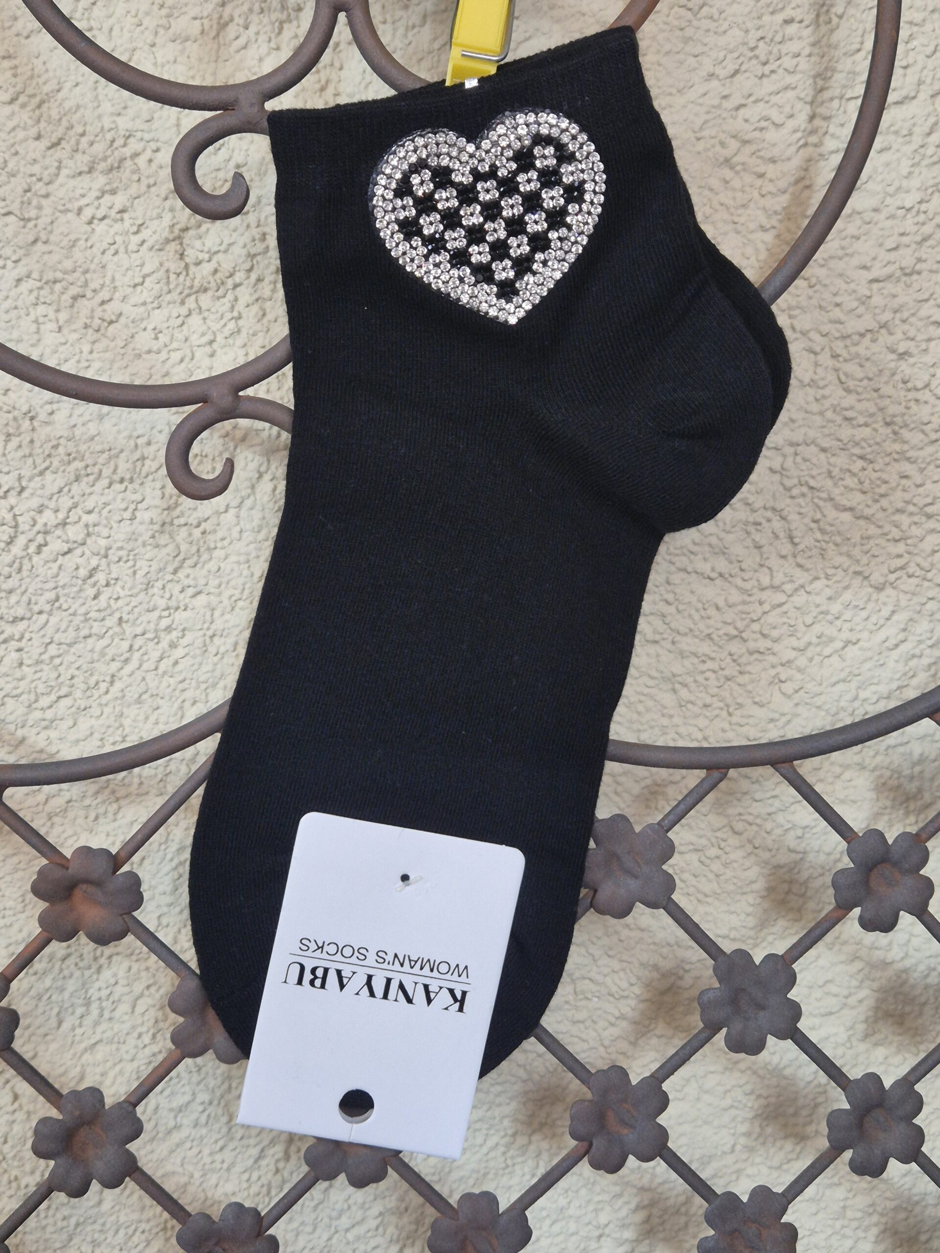 Sneakersocken mit Herz-Motiv aus Strasssteinchen